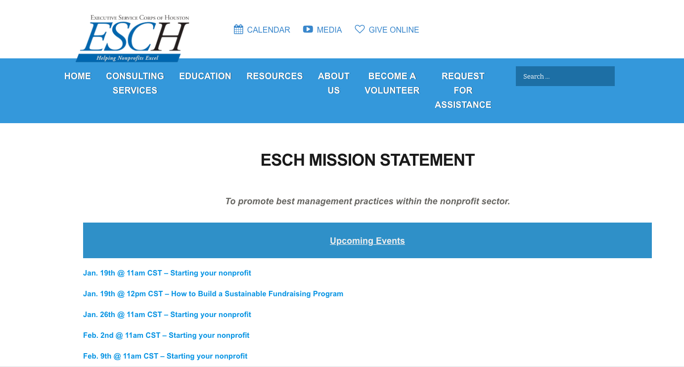 "We felt that working on this program benefited the Center. The best part was sharing of ideas by other agencies and the open discussion during the meetings. As a result of our work with ESC Houston, we are better able to develop a fund development plan." The Executive Service Corps-United States (ESC-US) is a national network of organizations that provide consulting, coaching, facilitation and many other services to strengthen nonprofits, schools and government organizations.